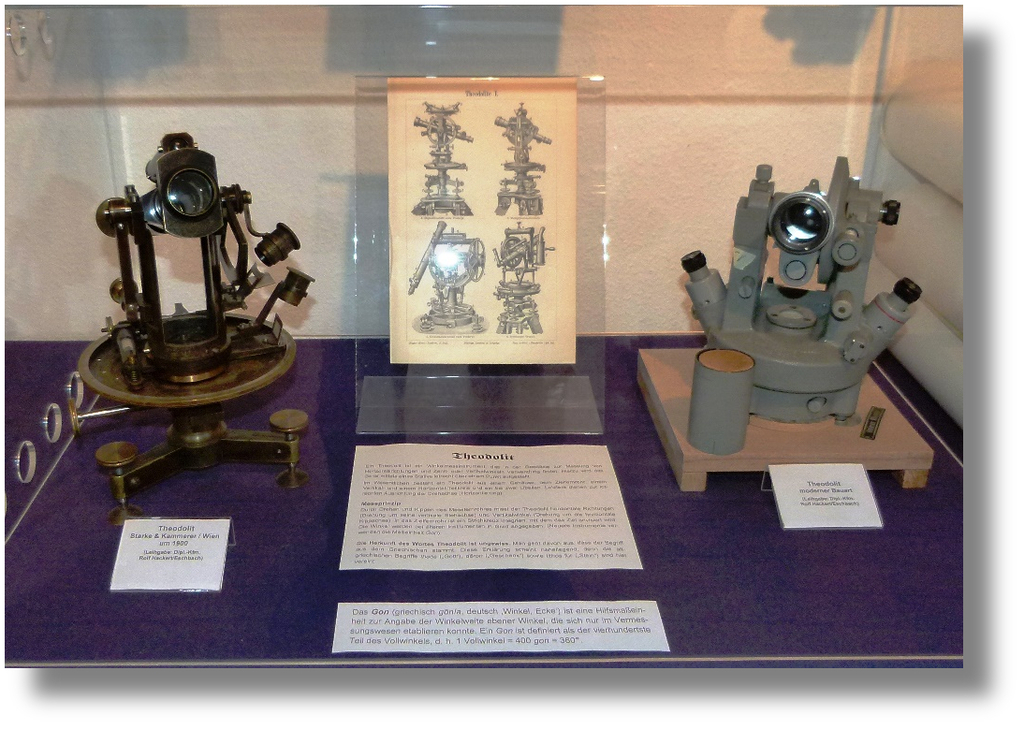 Die kleine Austellung sstellte Arbeitsgeräte und Methoden der ehemaligen Geodäten vor. Ohne sie konnten keine Karten erstellt, Grundstücke eingeteilt oder Katasterkarten gezeichnet werden. Unter einem Schnurlot oder einem Zollstock kann sich jeder etwas vor-stellen. Doch was ist Fluchtstab, ein Winkelprisma, ein Theodolit oder ein Tachymeter? Die Ausstellung gab Auskunft!