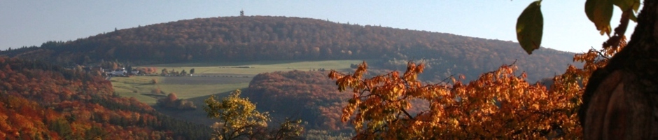 Im Nordosten der Kellerwald mit dem Hohen Lohr (657m) und dem Hunsrück (636m) in 93 km Entfernung. Im Osten der Vogelsberg mit Taufstein (773m) in 63 km Entfernung und der Herchenhainer Höhe (733m). Weiter südöstlich die Rhön mit der Dammersfeldkuppe (928m) in 102 km Entfernung und den Dreistelzberg (660m) in einer Entfernung von 95 km.