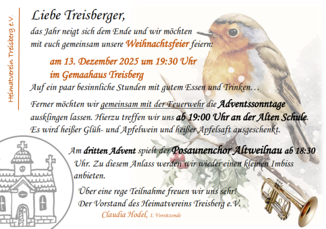 12. Dezember 2026 – Weihnachtsfeier des Heimatverein Treisberg e.V.